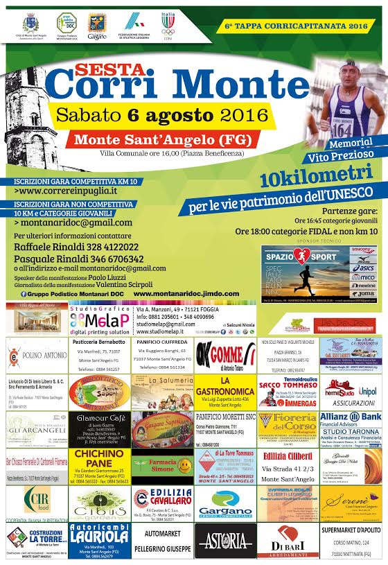6°CorriMonte in programma sabato 6 agosto 2016 a Monte Sant’Angelo FG