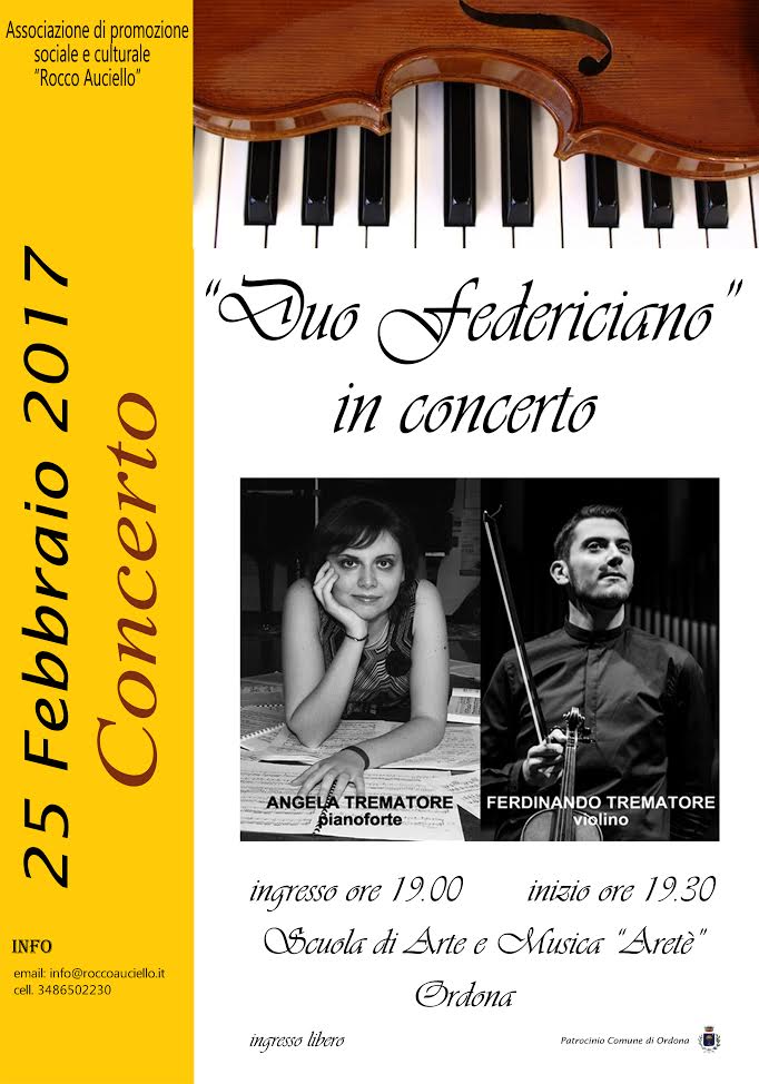 Il duo federiciano in concerto il 25 febbraio 2017 ad Ordona (Fg) Posted On: 18 Febbraio 2017 Posted By: Staff Comments: 0
