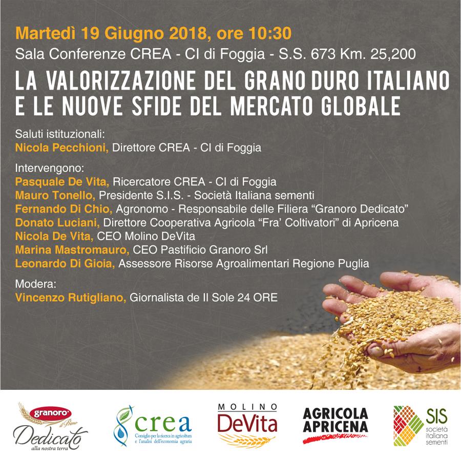 La valorizzazione del grano duro italiano e le nuove sfide del mercato globale, se ne parla a Foggia il 19 giugno 2018 Posted On: 17 Giugno 2018 Posted By: Staff Comments: 0