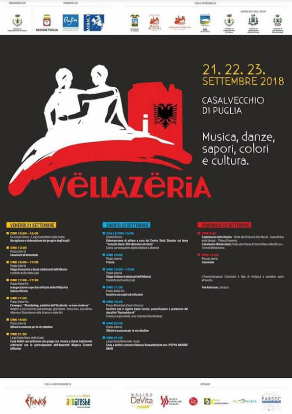Dal 21 al 23 settembre prossimi il Comune di Casalvecchio di Puglia ha organizzato la seconda edizione di “Vëllazëria”, la festa della fratellanza tra il centro arbëreshe del Subappennino Dauno e l’Albania, terra di origine dei Casalvecchiesi.