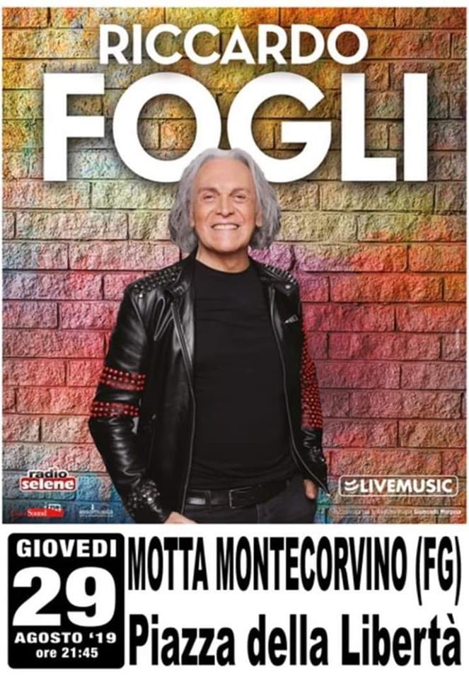 Riccardo FOGLI in concerto il 29 agosto 2019 a Motta Montecorvino (Fg) Posted On: 29 Agosto 2019 Posted By: Staff Comments: 0 Questa sera a Motta Montecorvino ci sarà il concerto di RICCARDO FOGLI