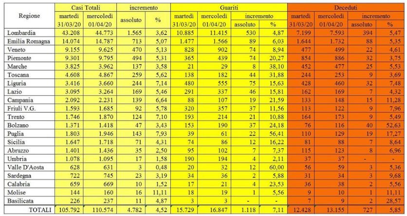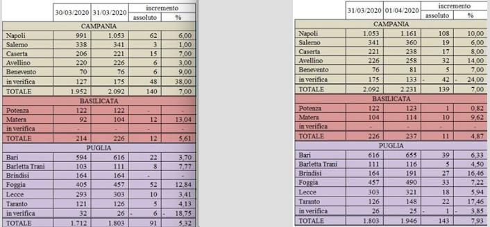 - Aumento del 2.61% dei nuovi casi anche in Puglia.