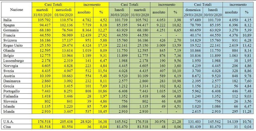Cari amici, vi invio le analisi statistiche aggiornate con i dati di oggi presi dall’OMS, CDC e eCDC a livello Europeo, Nazionale e Regionale. (un pò in ritardo!) Ci terrei a precisare che, queste analisi sono state fatte considerando il numero dei casi infetti diagnosticati nell’arco delle 24h. Questi dati non considerano il bias dovuto alla presenza di casi positivi non sottoposti a screening con tampone e, pertanto, non diagnosticati; per tale motivo, questi dati NON rappresentano il numero effettivo di casi infetti, ma ci consentono di definire l’andamento del tasso di replicazione virale e, quindi, della fitness virale.