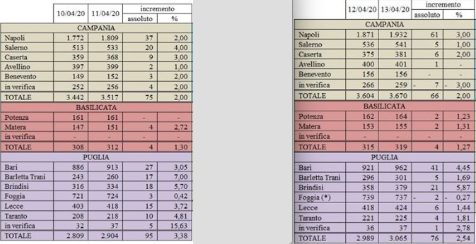 Pubblichiamo il bollettino epidemiologico con riferimento al 12 e al 13 aprile 2020 su scala Italia e Puglia con il commento tecnico del microbiologo dott. Francesco Antonucci, Dirigente Biologo presso il Policlinico Riuniti di Foggia.