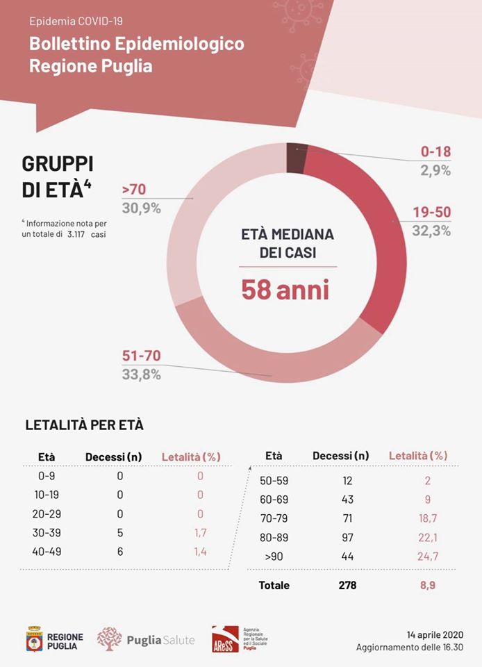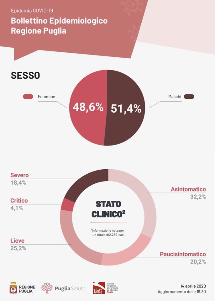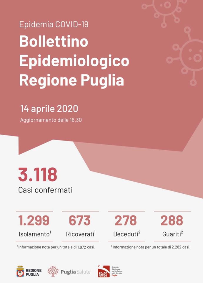 Pubblichiamo il bollettino epidemiologico con riferimento al 14 aprile 2020 su scala Italia e Puglia con il commento tecnico del microbiologo dott. Francesco Antonucci, Dirigente Biologo presso il Policlinico Riuniti di Foggia.