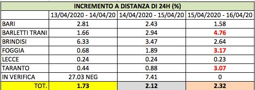 - IN PUGLIA: INCREMENTO del 2.32% dei nuovi casi infetti nelle ultime 24 ore;