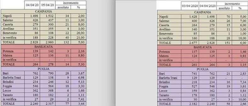 - Incremento dei casi più o meno costante nella Provincia di Foggia rispetto alle analisi di ieri;
