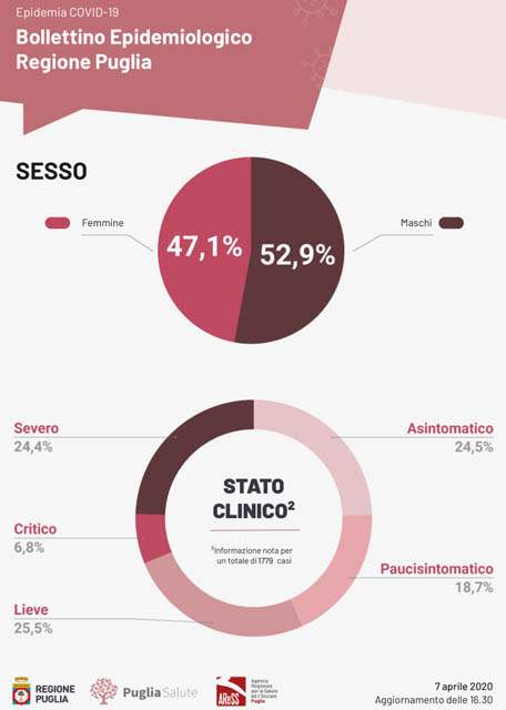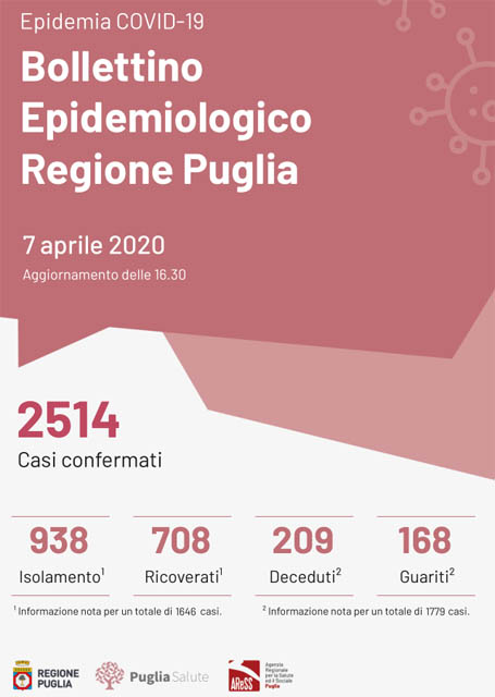 Come ogni sera pubblichiamo il bollettino epidemiologico con riferimento al 7 aprile 2020 su scala Italia e Puglia con il commento tecnico del microbiologo dott. Francesco Antonucci, Dirigente Biologo presso il Policlinico Riuniti di Foggia.