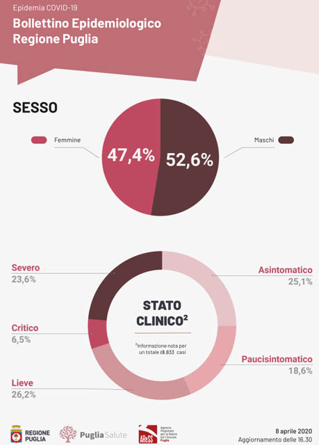 Come ogni sera pubblichiamo il bollettino epidemiologico con riferimento all’8 aprile 2020 su scala Italia e Puglia con il commento tecnico del microbiologo dott. Francesco Antonucci, Dirigente Biologo presso il Policlinico Riuniti di Foggia. Sono 17 i nuovi casi in Capitanata con 4 decessi.