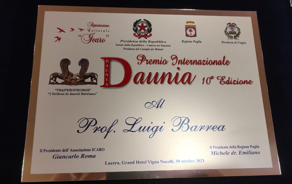 Tra le numerose personalità a cui è stato conferito il premio c’è anche il prof. Luigi Barrea di Torremaggiore (FG).