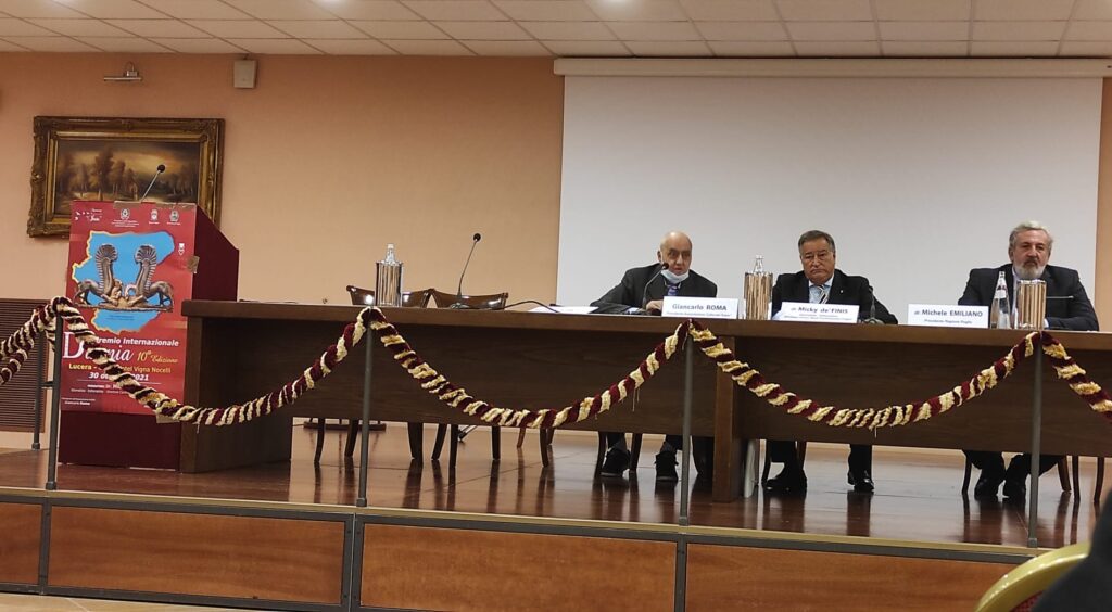 Si è svolto nel pomeriggio di sabato 30 Ottobre, presso il Resort Grand Hotel Vigna Nocelli a Lucera, l’assegnazione del Premio Internazionale Daunia 2021, giunto alla sua decima edizione.