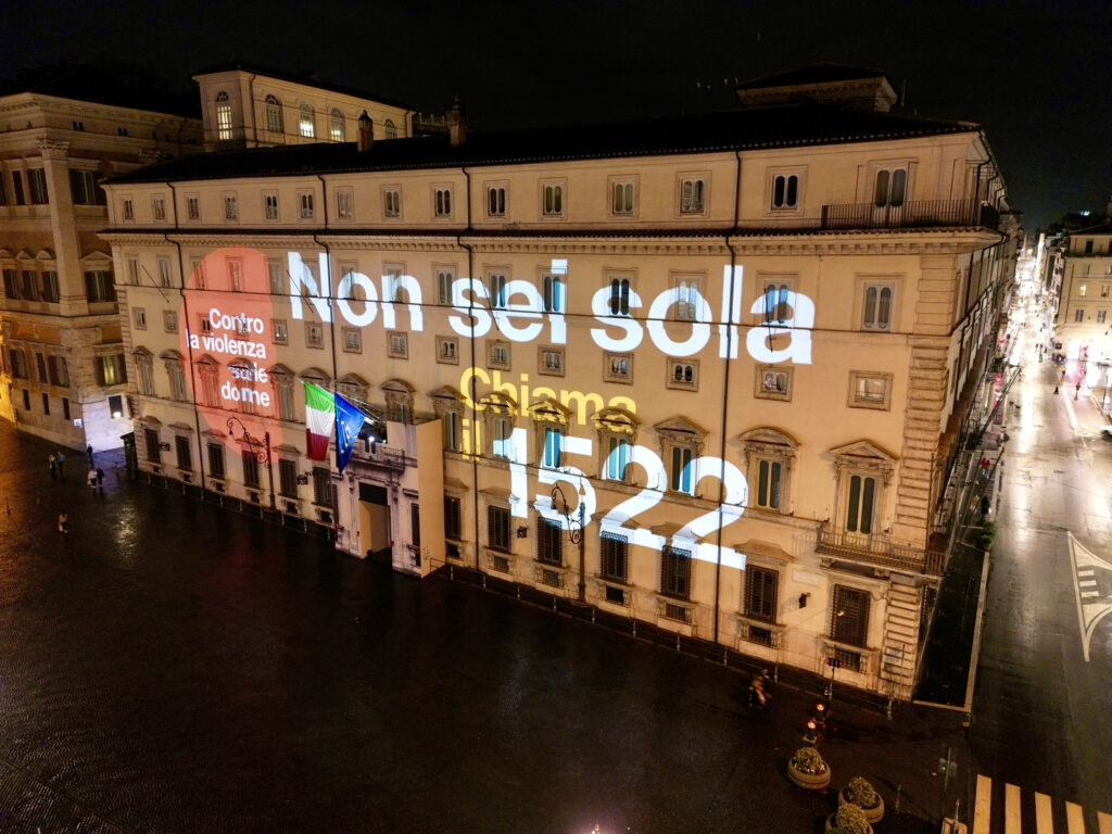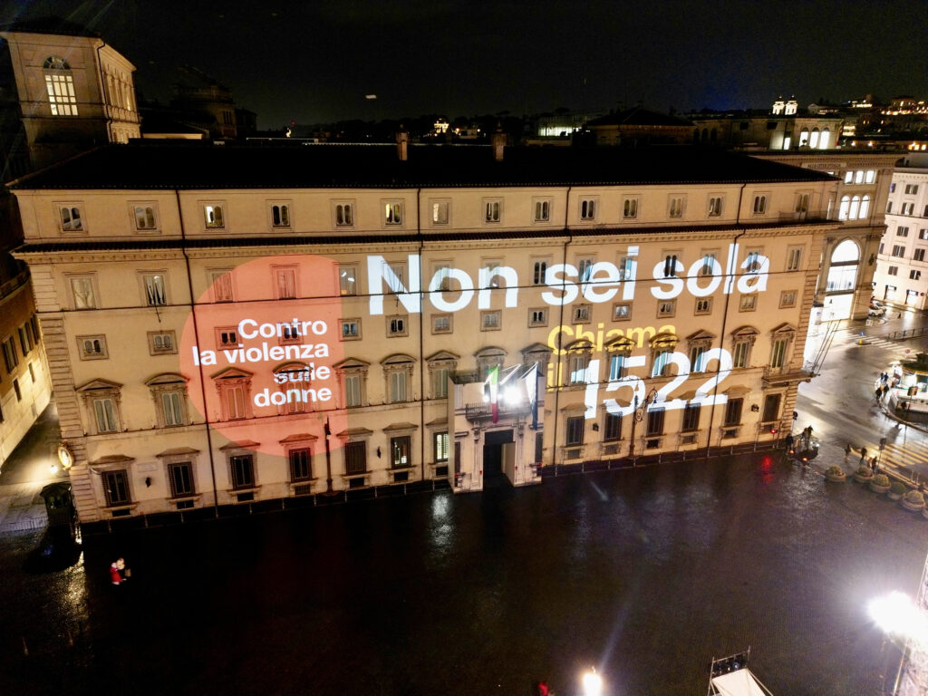 “Stasera siamo qui per dire con un numero di telefono, con un numero alle donne italiane che non sono sole. Voi lo vedete, qua dietro: 1522. È un numero che si può chiamare in ogni minuto del giorno se si ha paura. Ed è un numero che consente di trovare dall’altra parte qualcuno che ti può aiutare immediatamente, perché le norme ci sono, perché le Istituzioni ci sono e le donne italiane devono saperlo“. Così il Presidente Giorgia Meloni nel suo intervento alla cerimonia di illuminazione della facciata principale di Palazzo Chigi in occasione della Giornata internazionale per l’eliminazione della violenza contro le donne.