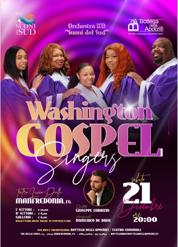 Grande Concerto di Natale a cura dell’ Orchestra ICO Suoni del Sud con i celebri Washington Gospel Singers al Teatro Dalla di Manfredonia. Appuntamento il 21 dicembre 2024 alle ore 20